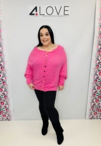 Button detail sloppy jumper. Buttons can be worn to the front or the back – one size – size 10 – 18