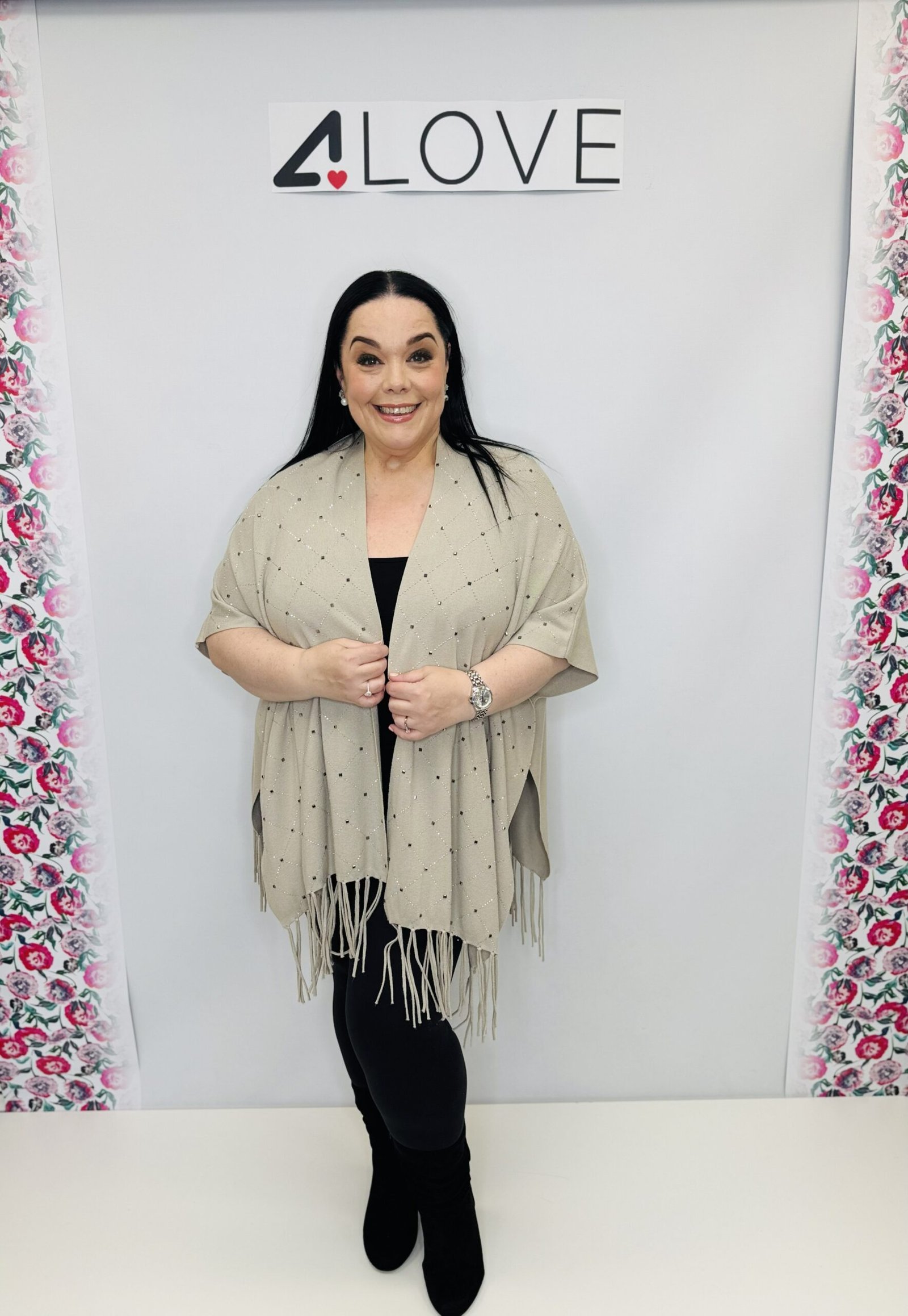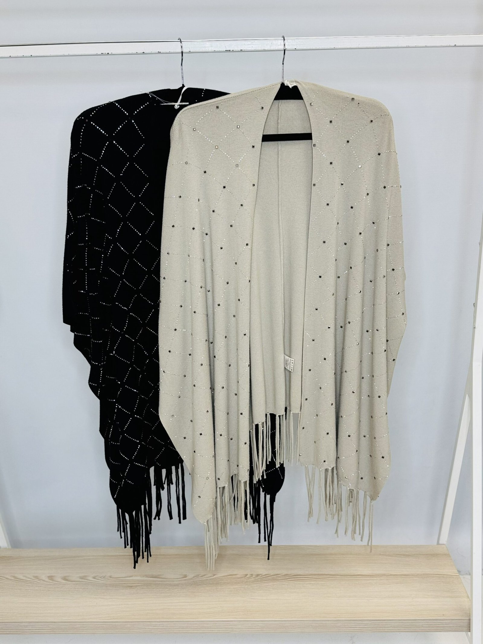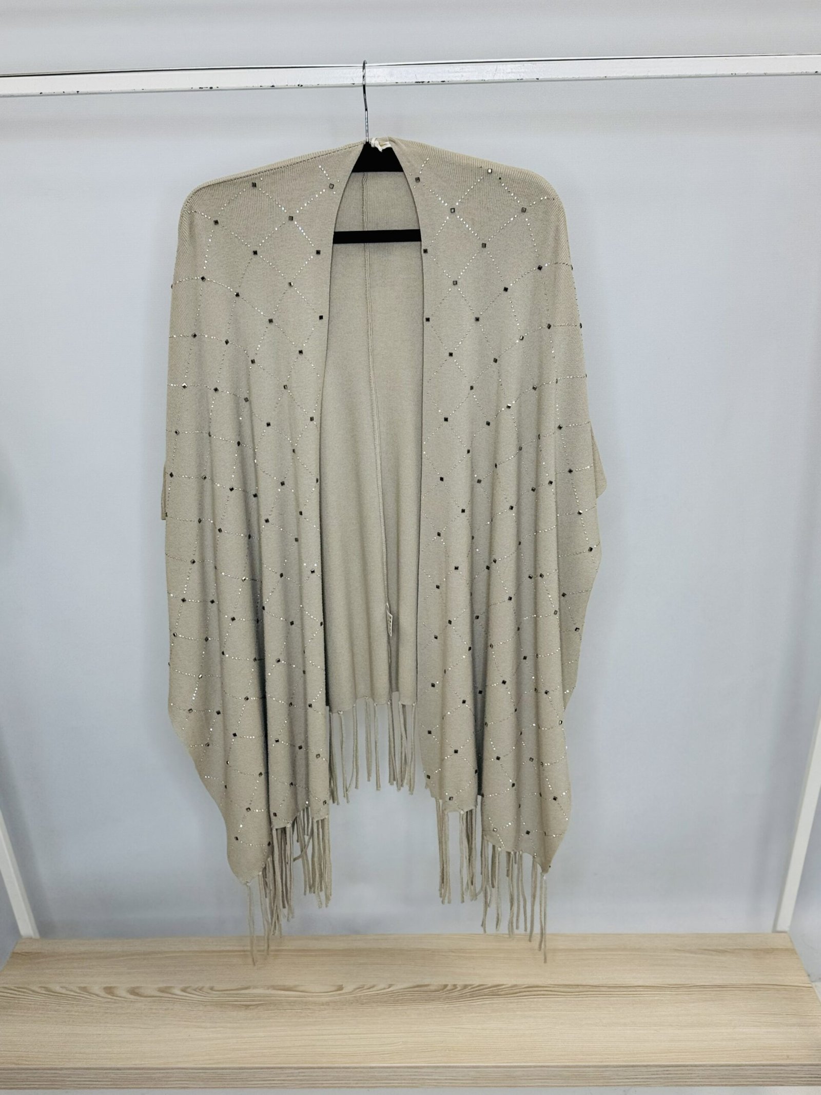 ‘L’ Diamante detail fringed wrap / cardigan – one size 10 – 24