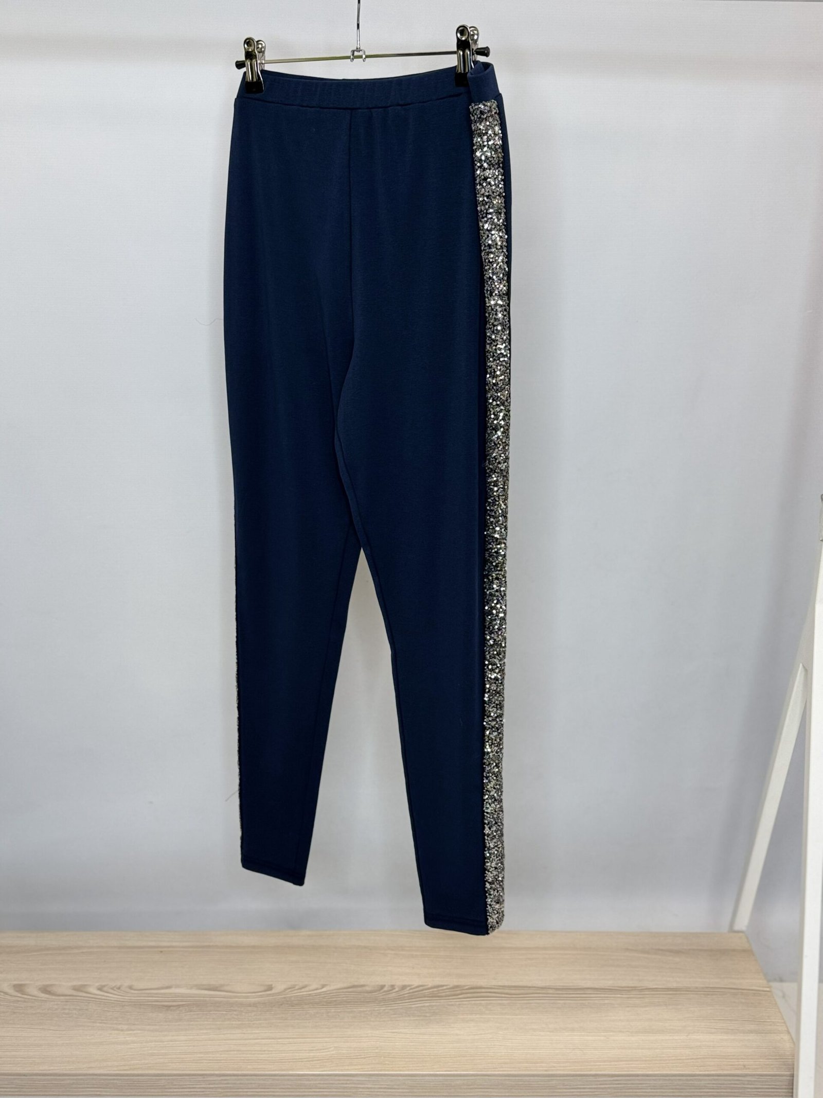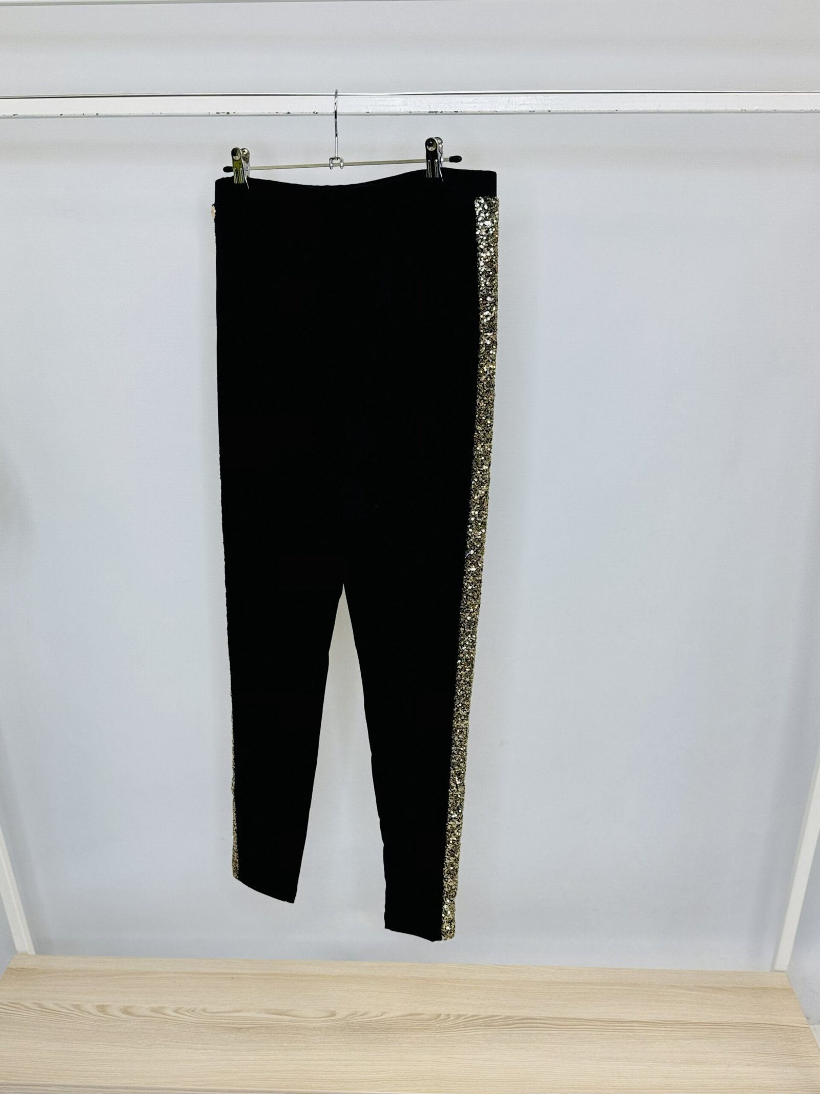 ‘L’ Sequin side panel jersey stretch leggings – one size 10 – 18