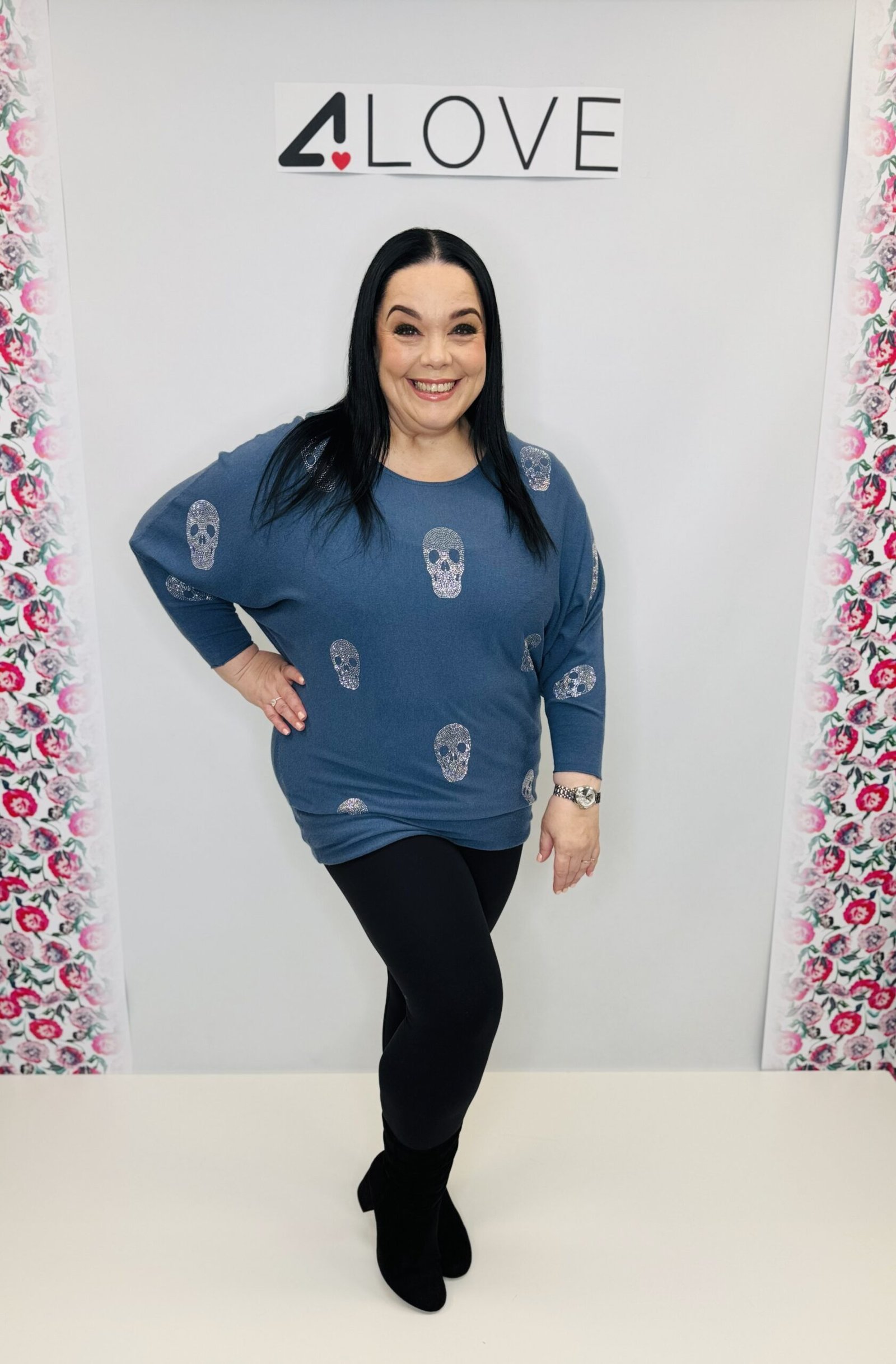 Studded skull detail knitted drop shoulder top – one size – size 10 – 20